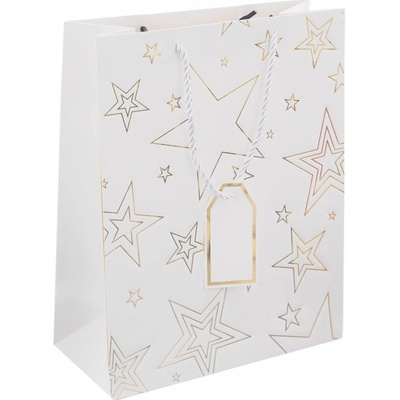 Elegantná biela darčeková taška s dekorom zlatých hviezd je tým pravým miestom na uloženie najrôznejších darčekov, nepravidelných krabíc. Pre partnera, kamaráta, kolegu, ale aj...